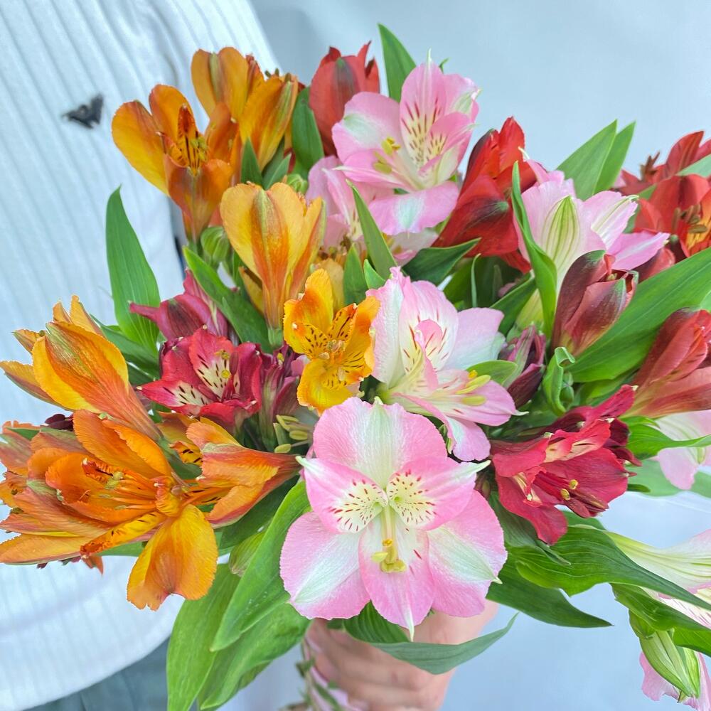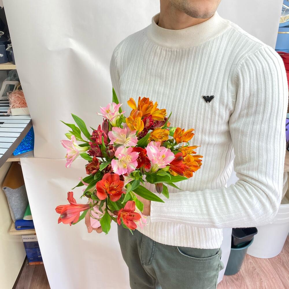 альстромерия микс – 11 шт.Фоамиран – 1 шт.Шпагат – 1 шт.рекомендация по уходу за цветами – 1 шт.вафельная трубочка подарок – 1 шт.