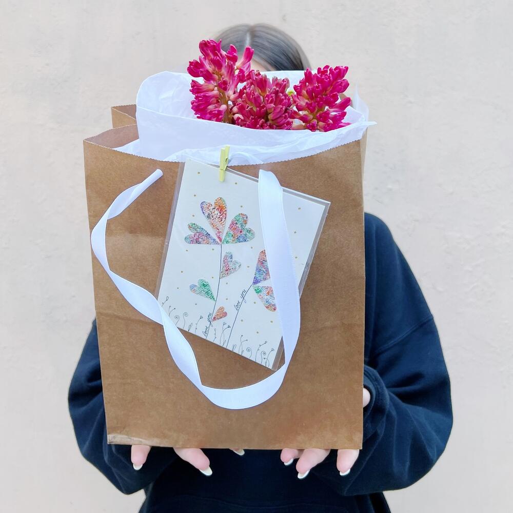 Упаковка – 3 шт.Авторская открытка – 1 шт.гиацинты – 5 шт.крафтовый пакет 1 – 1 шт.