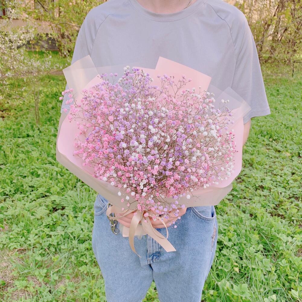 Воздушный букет радужной гипсофилы
