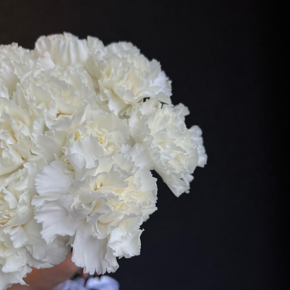 белые диантусы – 11 шт.Атласная лента – 1 шт.
