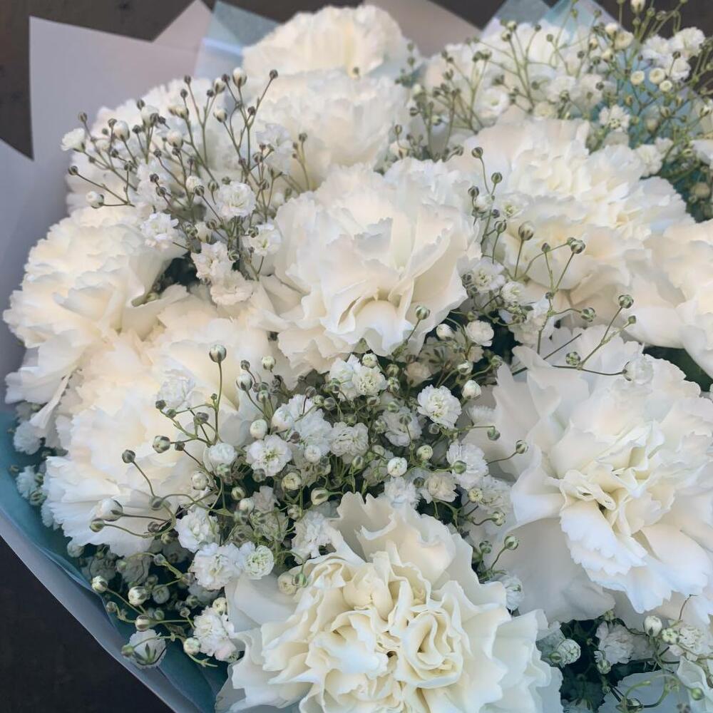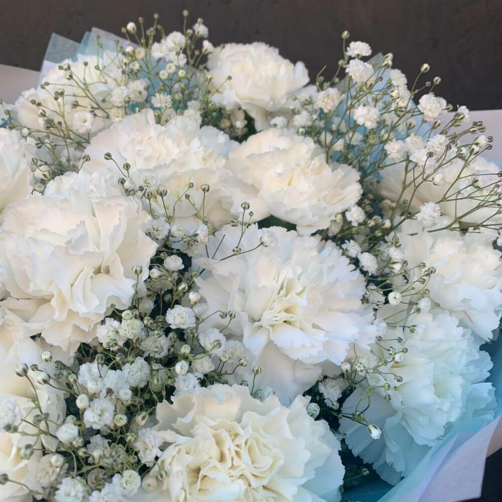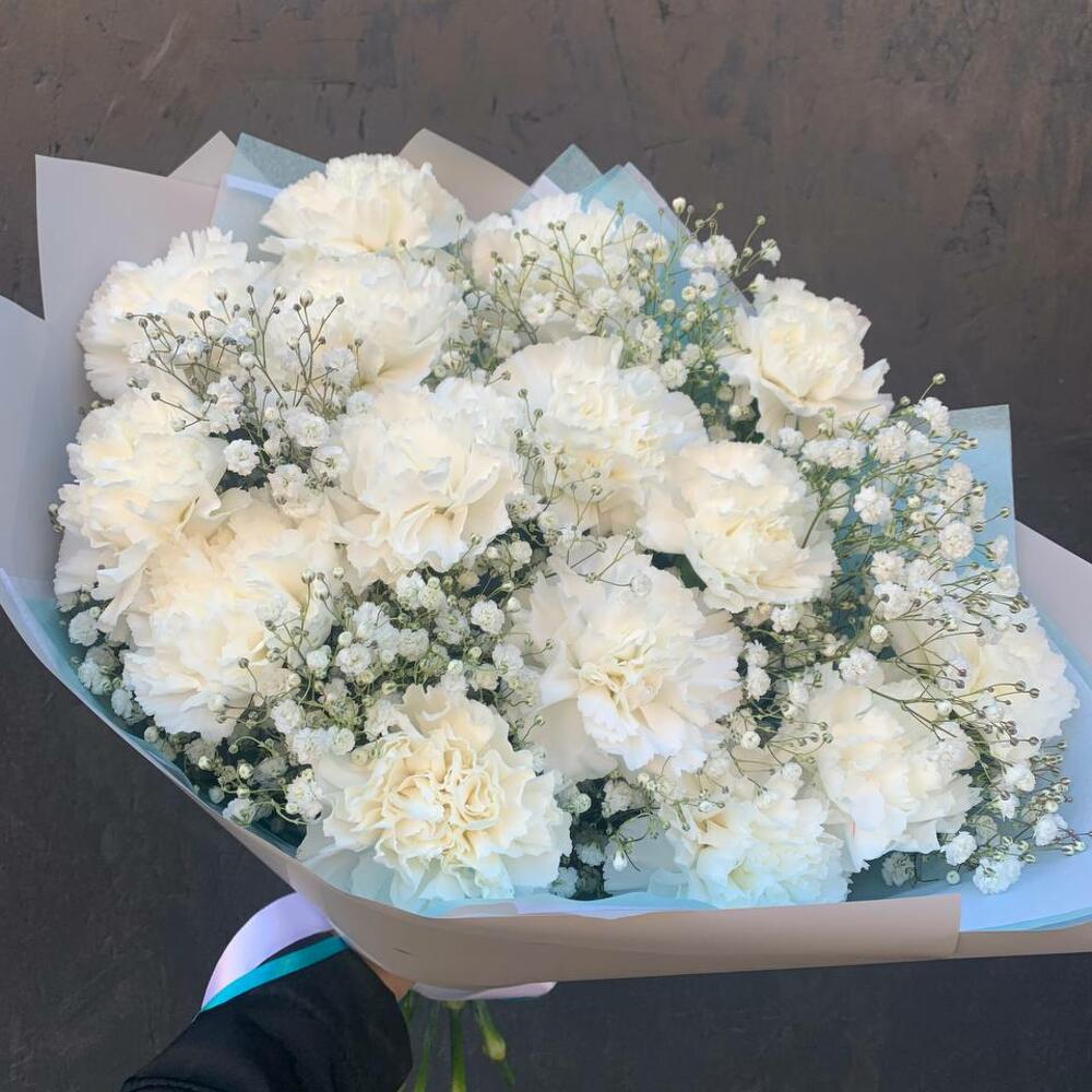 Букет из белой гвоздики и гипсофилы «Белоснежное облако»