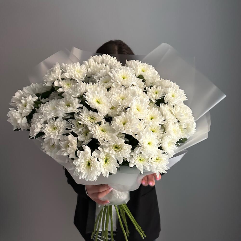Хризантема кустовая белая – 15 шт.Упаковка дизайнерская – 5 шт.