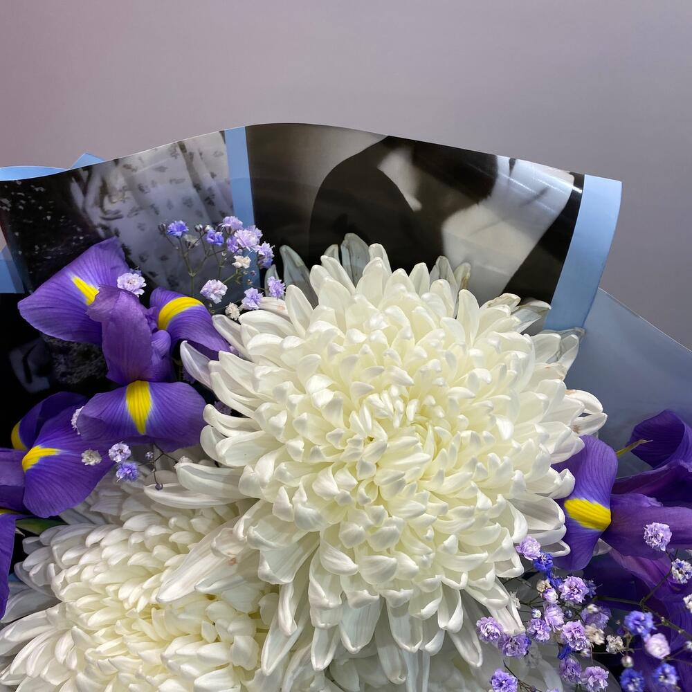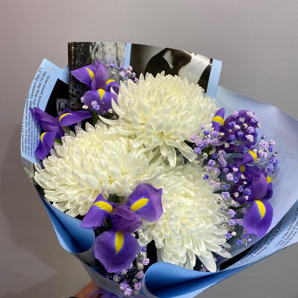 Букет хризантем с ирисами