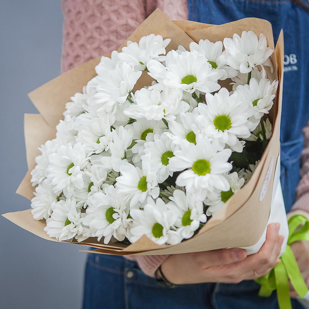 Букет из 7 кустовых хризантем в крафте