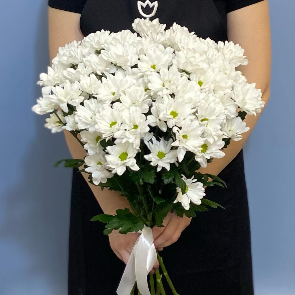 Лента атласная – 1 шт.ромашковая хризантема белая – 7 шт.