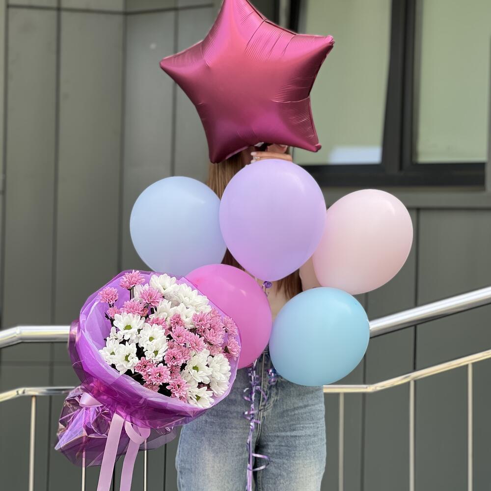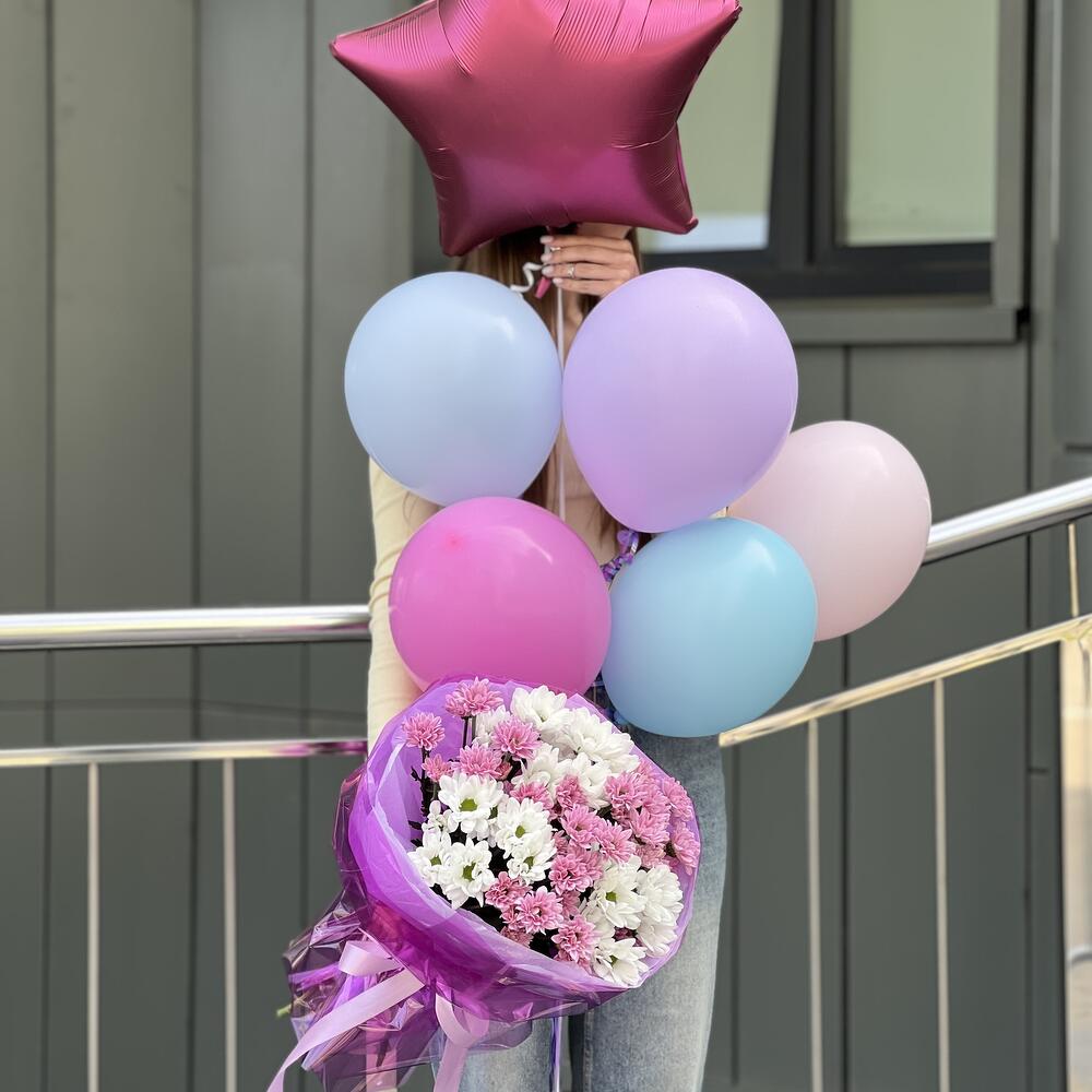 Комбо 5 из букета хризантемы и шаров