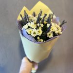 «Лавандовое созвездие» Букет из розы, гвоздики, статица и хлопка