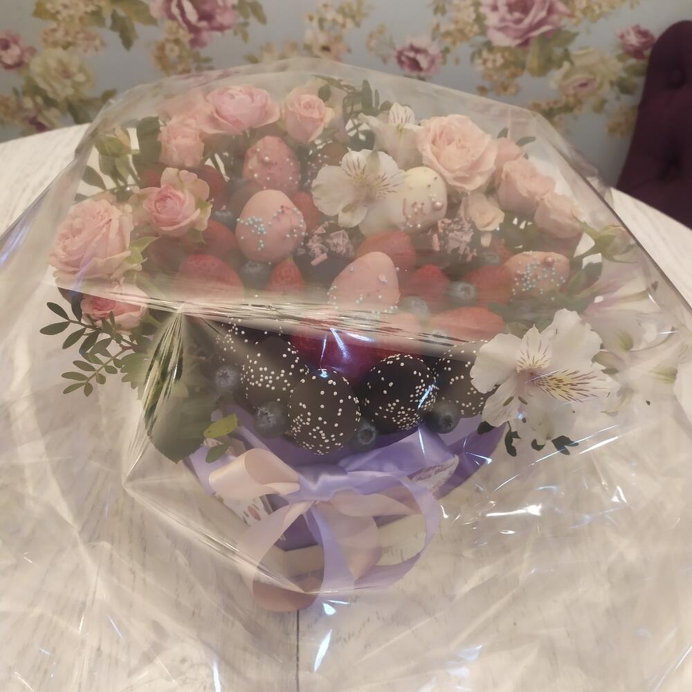 Букет “Мое сердце ” из клубники и цветов