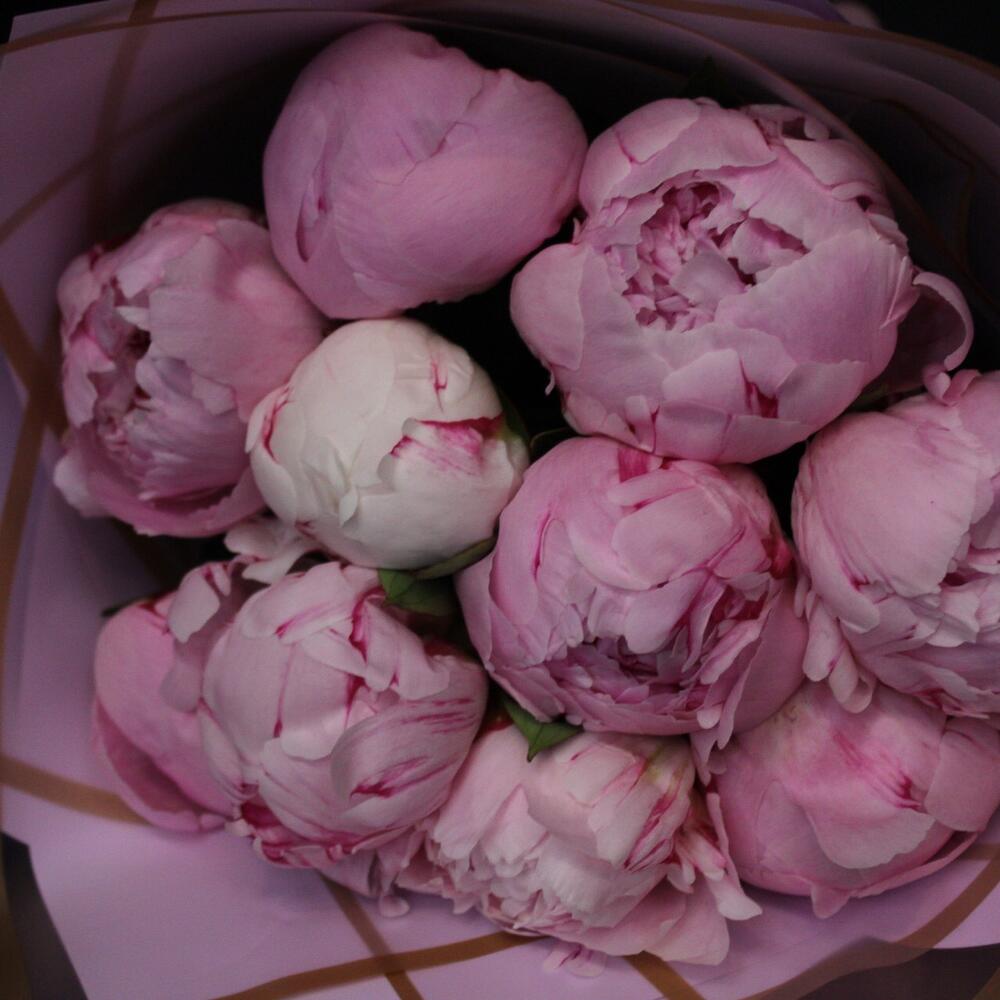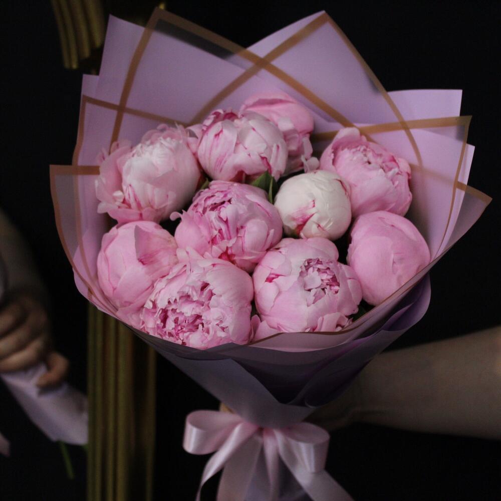 Лента атласная – 2 шт.Пион Сара Бернар – 11 шт.Пленка матовая – 3 шт.