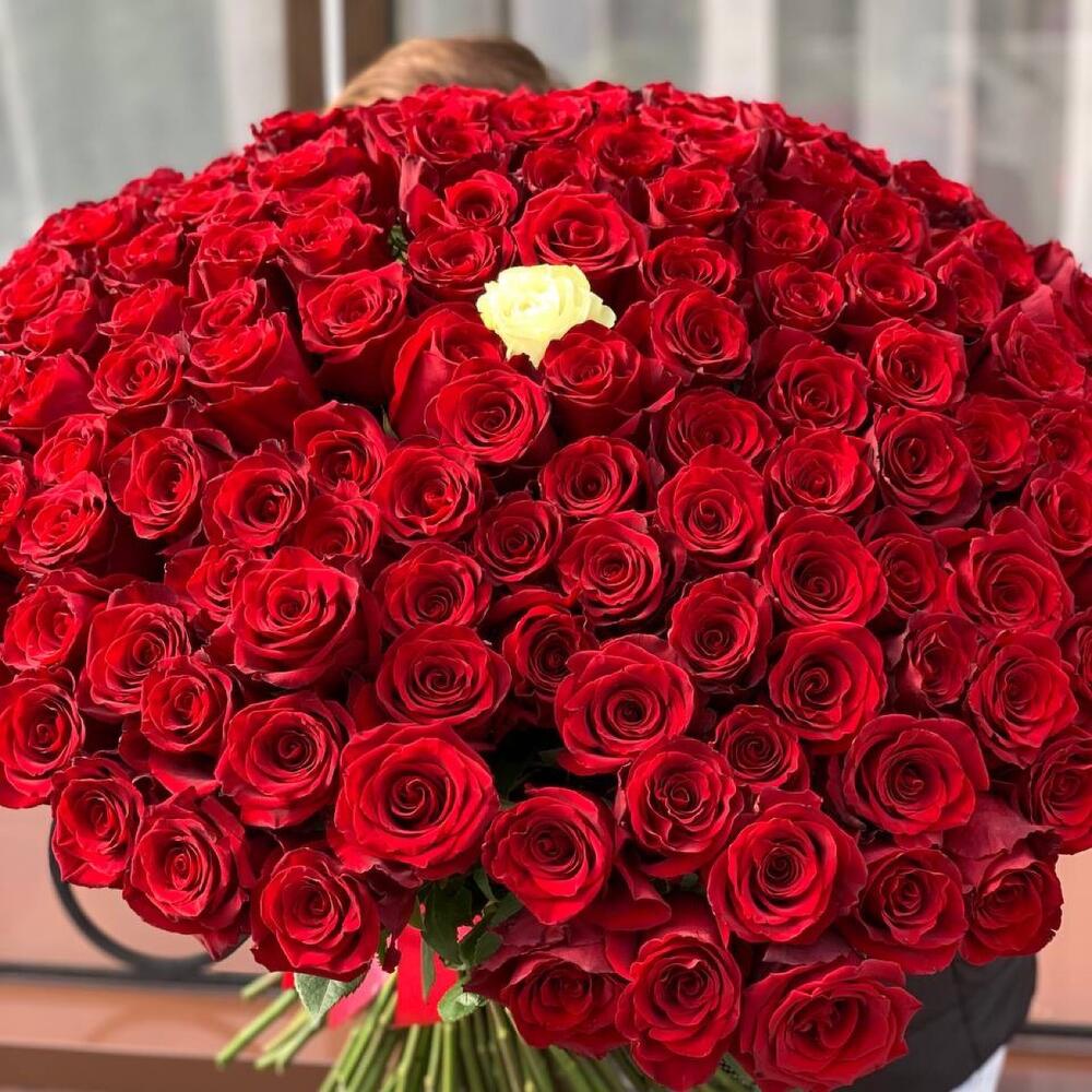 Роза эквадор 90 см – 151 шт.Лента атласная – 1 шт.
