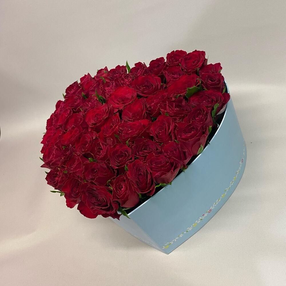 Роза – 51 шт.Коробка сердце – 1 шт.Оазис флористический – 2 шт.