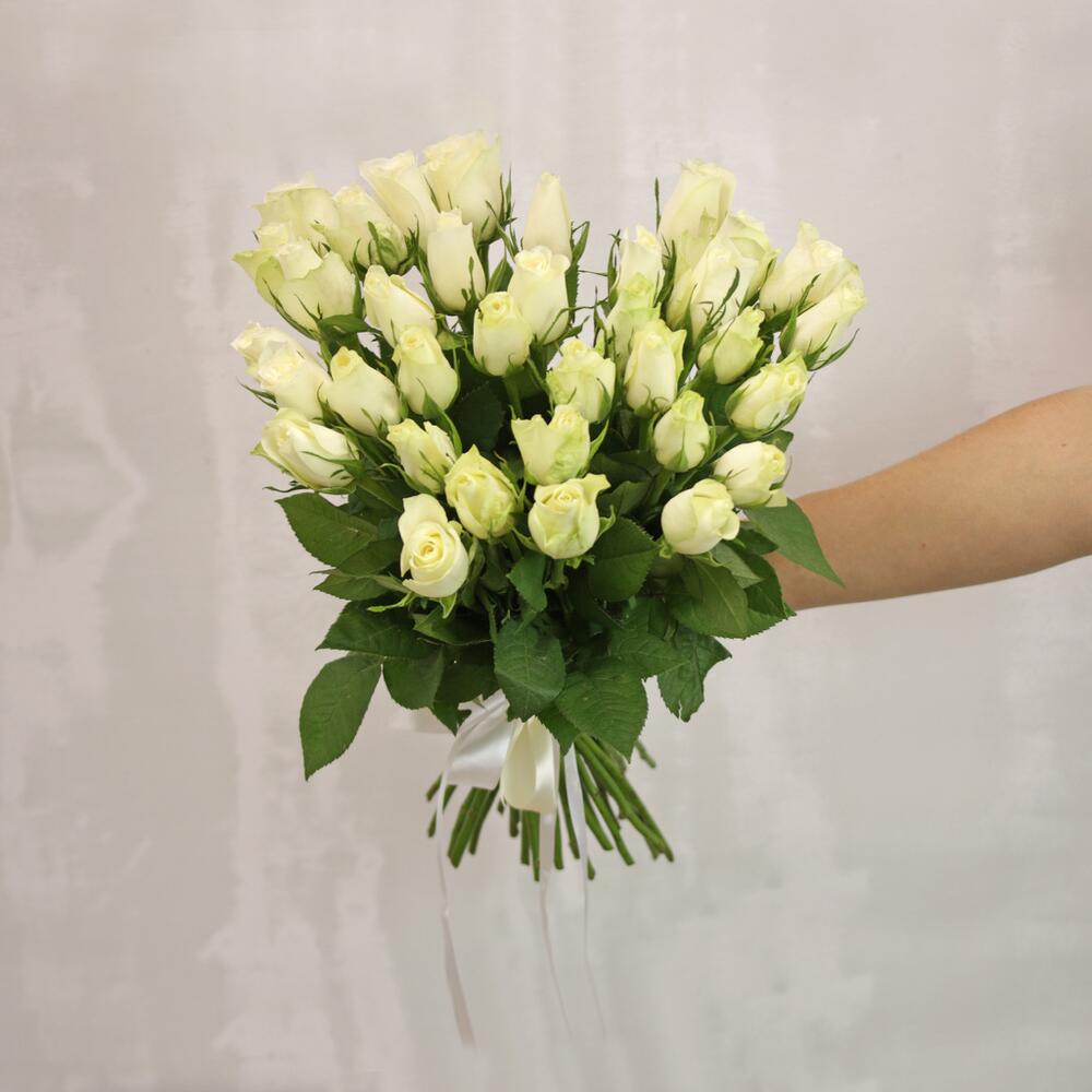 Букет из 35 белых роз 35-40 см (Кения) под ленту