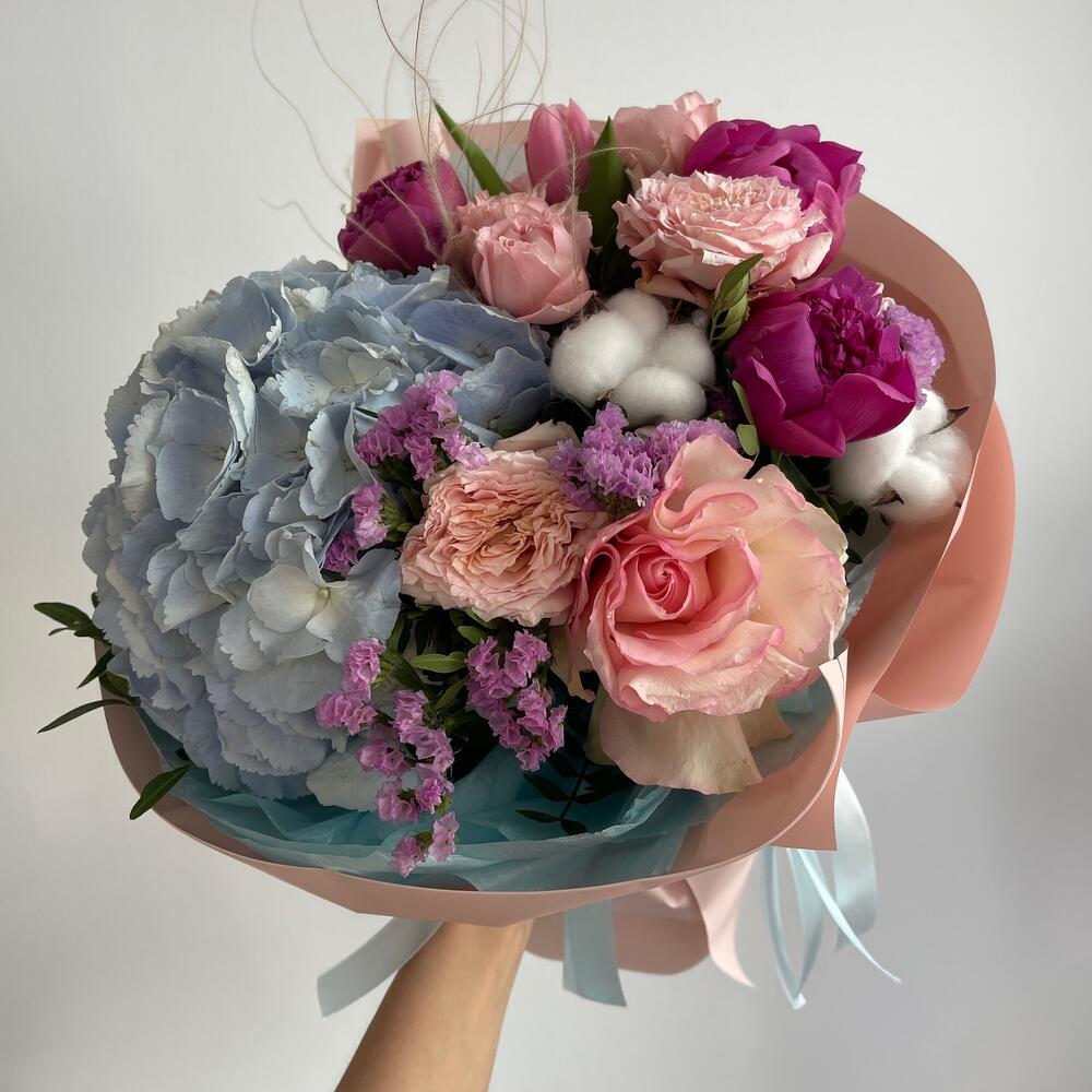 Букет из гортензии ,пиона ,тюльпана ,французская роза