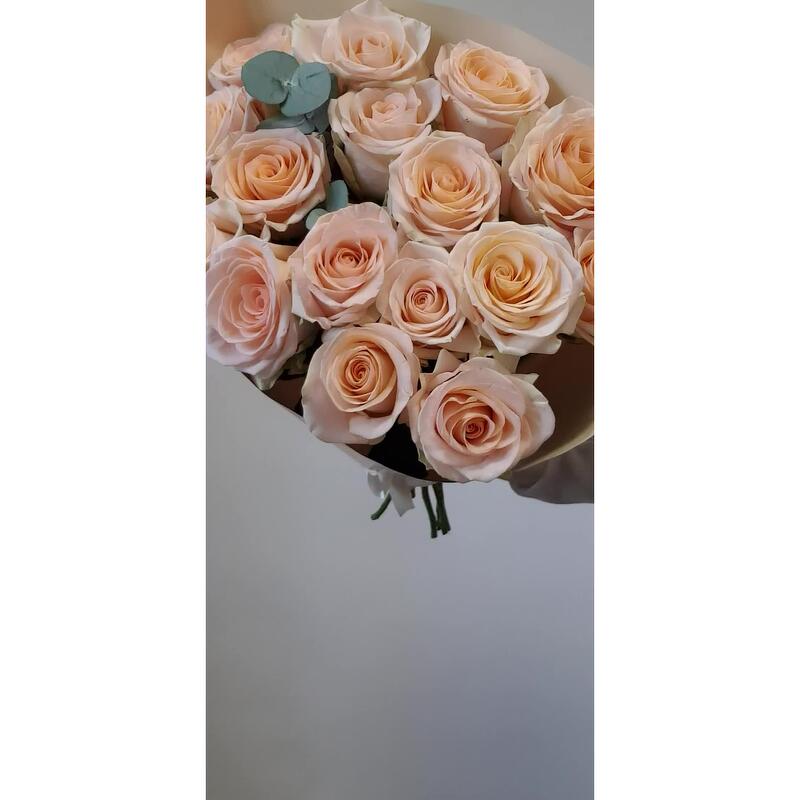 Эвкалипт – 1 шт.Упаковка – 2 шт.Лента атласная – 1 шт.Роза тиффани – 17 шт.