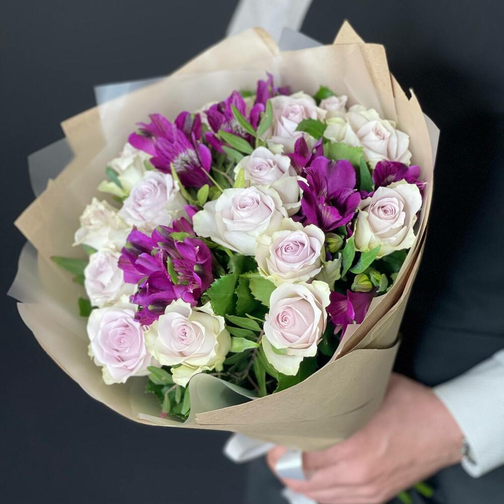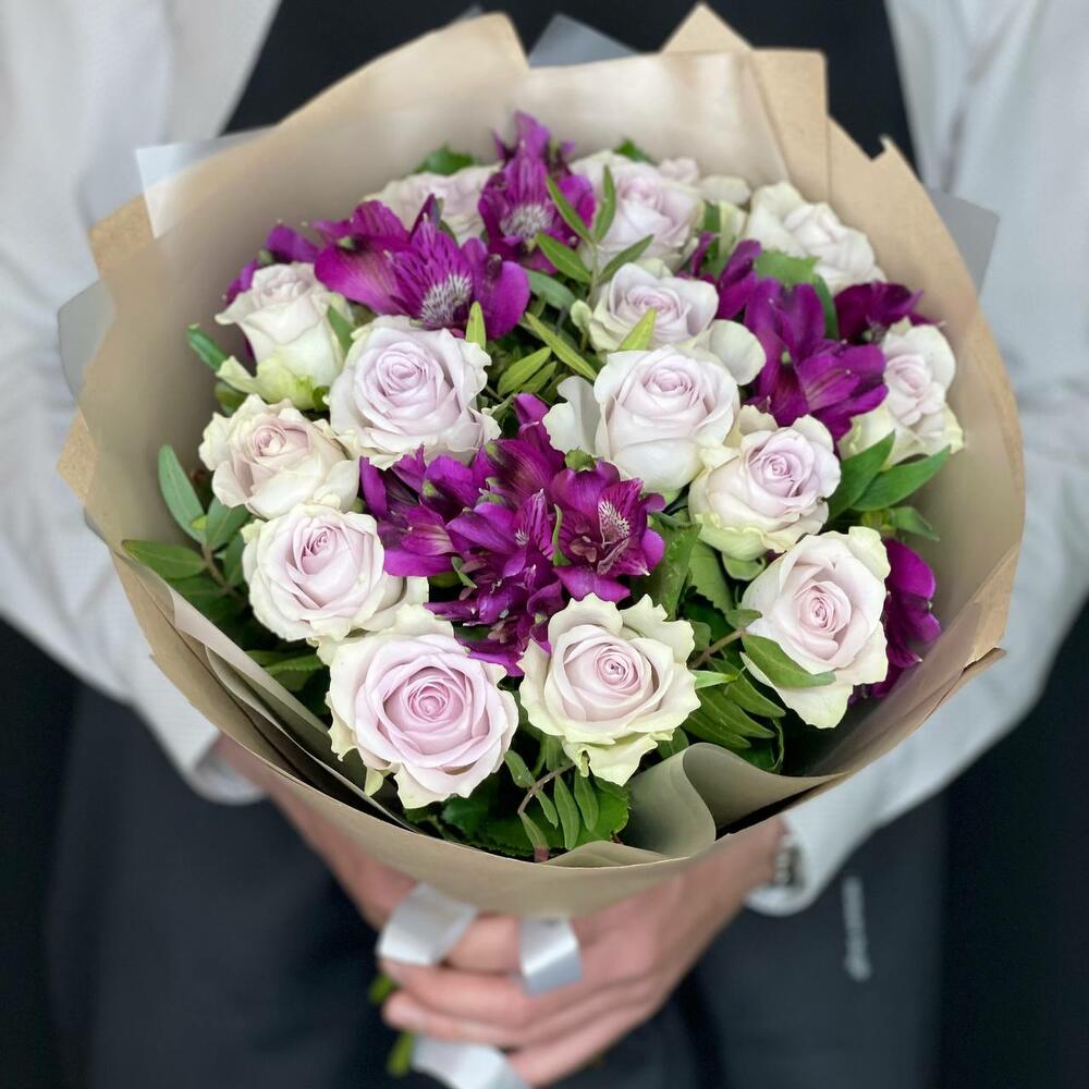 Гвоздики, Кустовые розы, Лизиантусы, Пионовидные розы, Розы