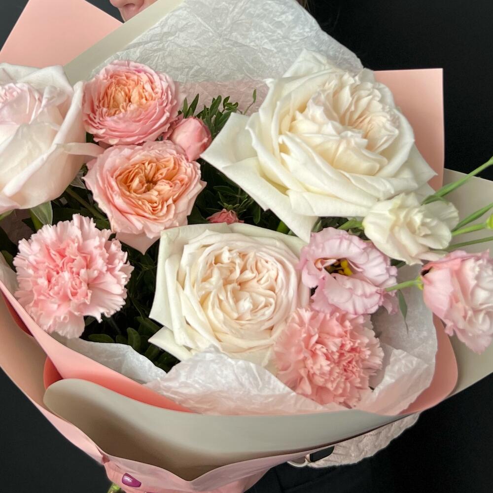 Категорий: Гвоздики, Кустовые розы, Лизиантусы, Пионовидные розы, Розы