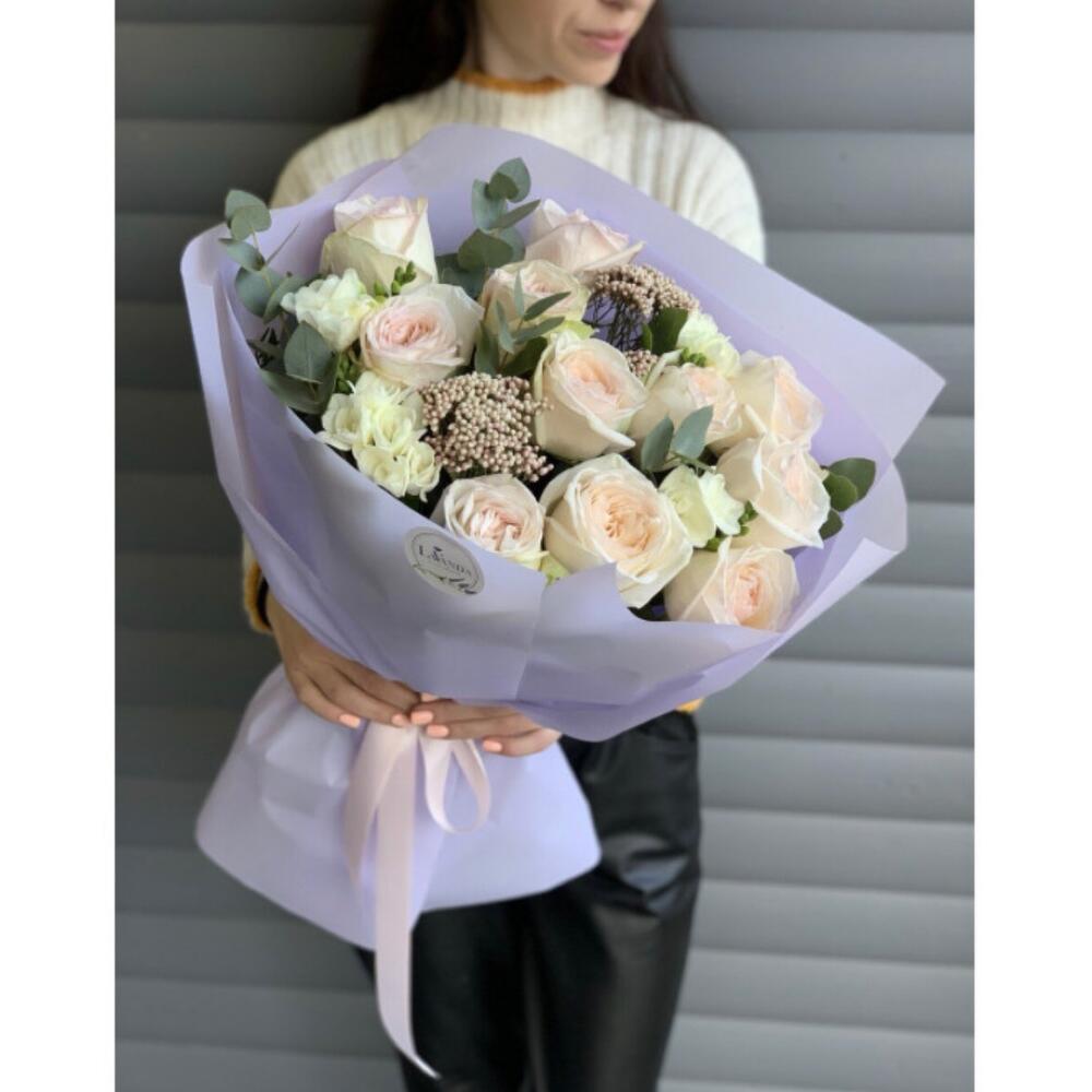 Гвоздики, Кустовые розы, Лизиантусы, Пионовидные розы, Розы