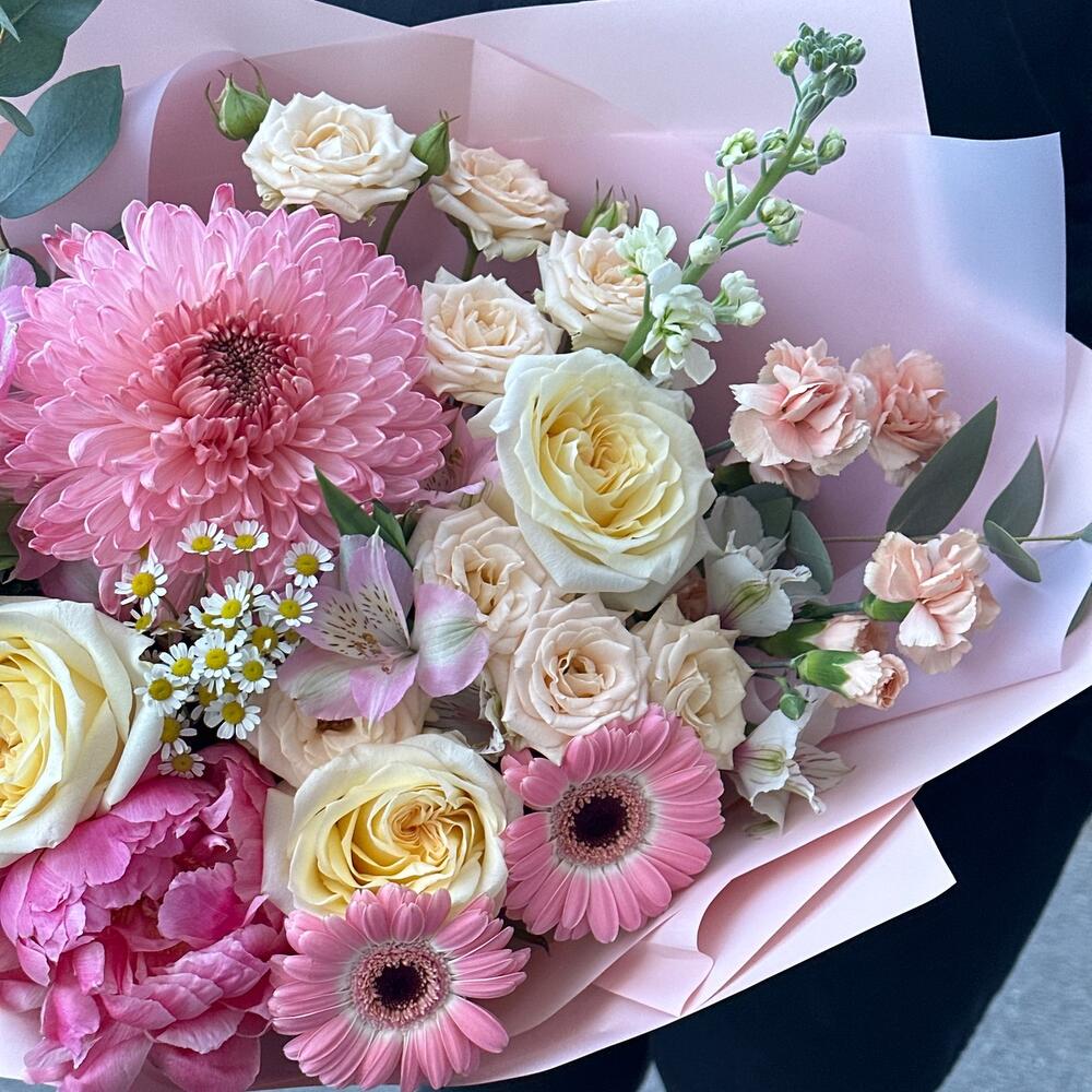 Категорий: Альстромерии, Гвоздики, Кустовые розы, Пионы, Розы