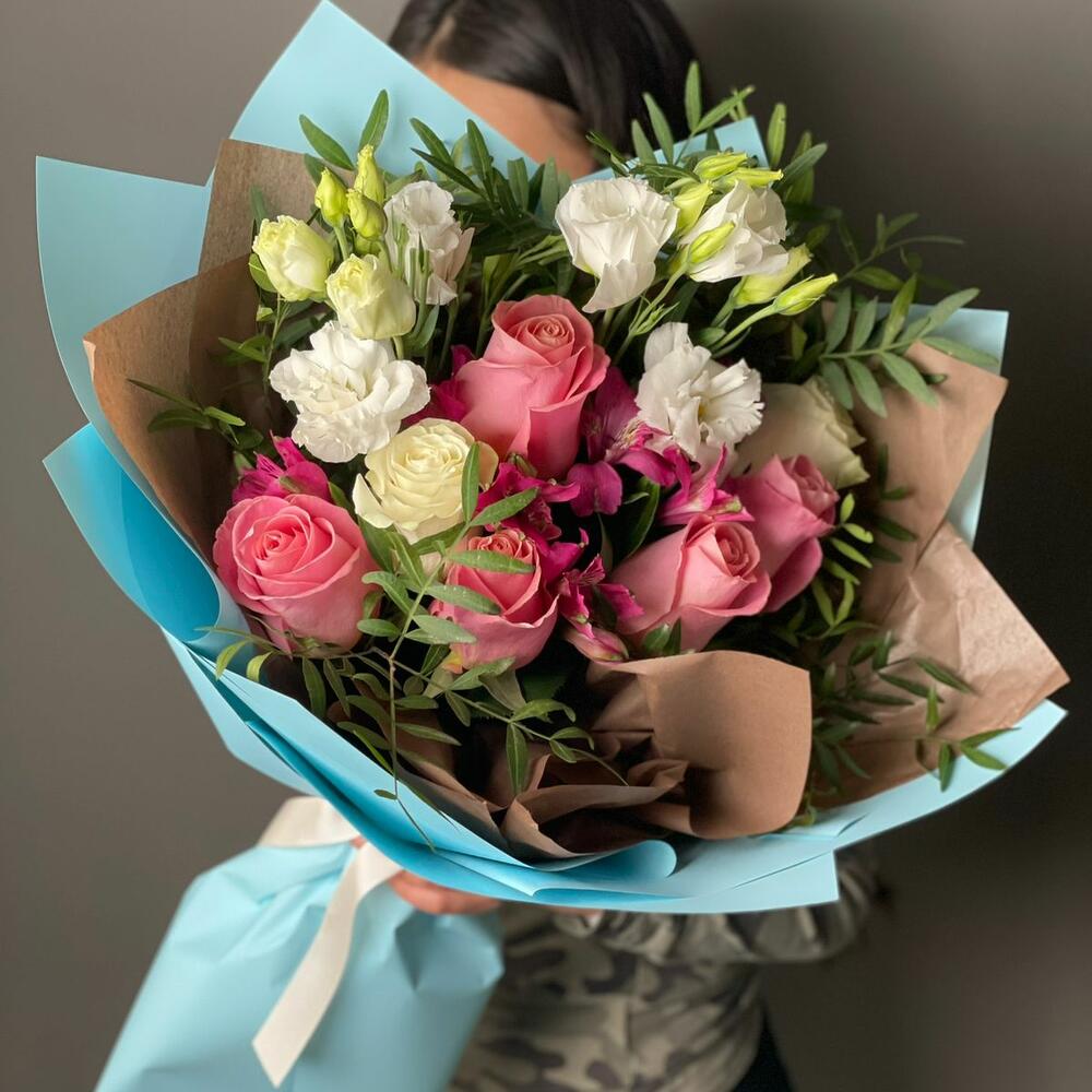 Гвоздики, Кустовые розы, Лизиантусы, Пионовидные розы, Розы