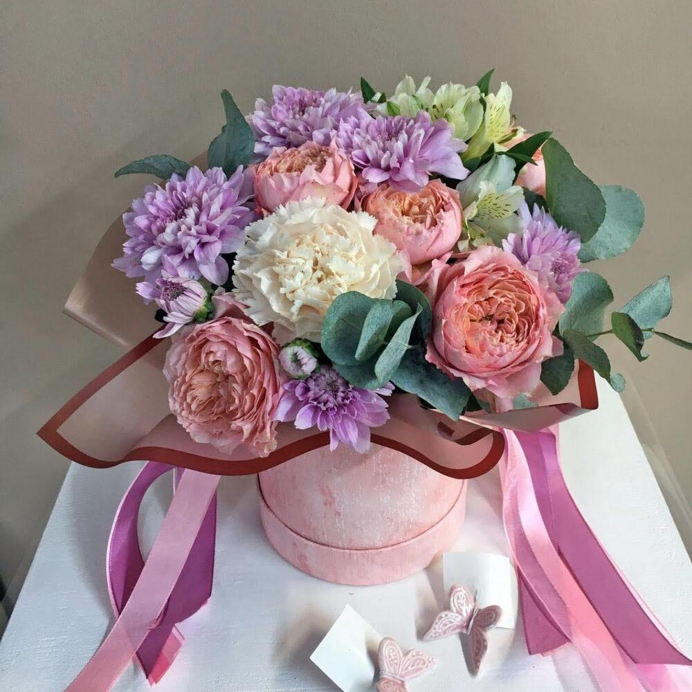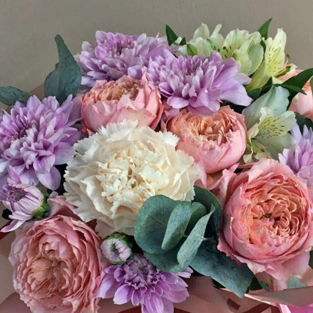 Гвоздики, Кустовые розы, Пионовидные розы, Розы
