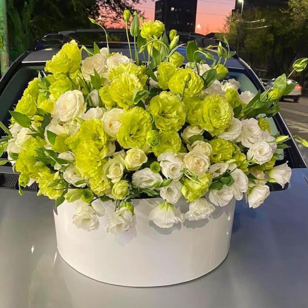 Альстромерии, Гвоздики, Кустовые розы, Лизиантусы, Розы, Хризантемы