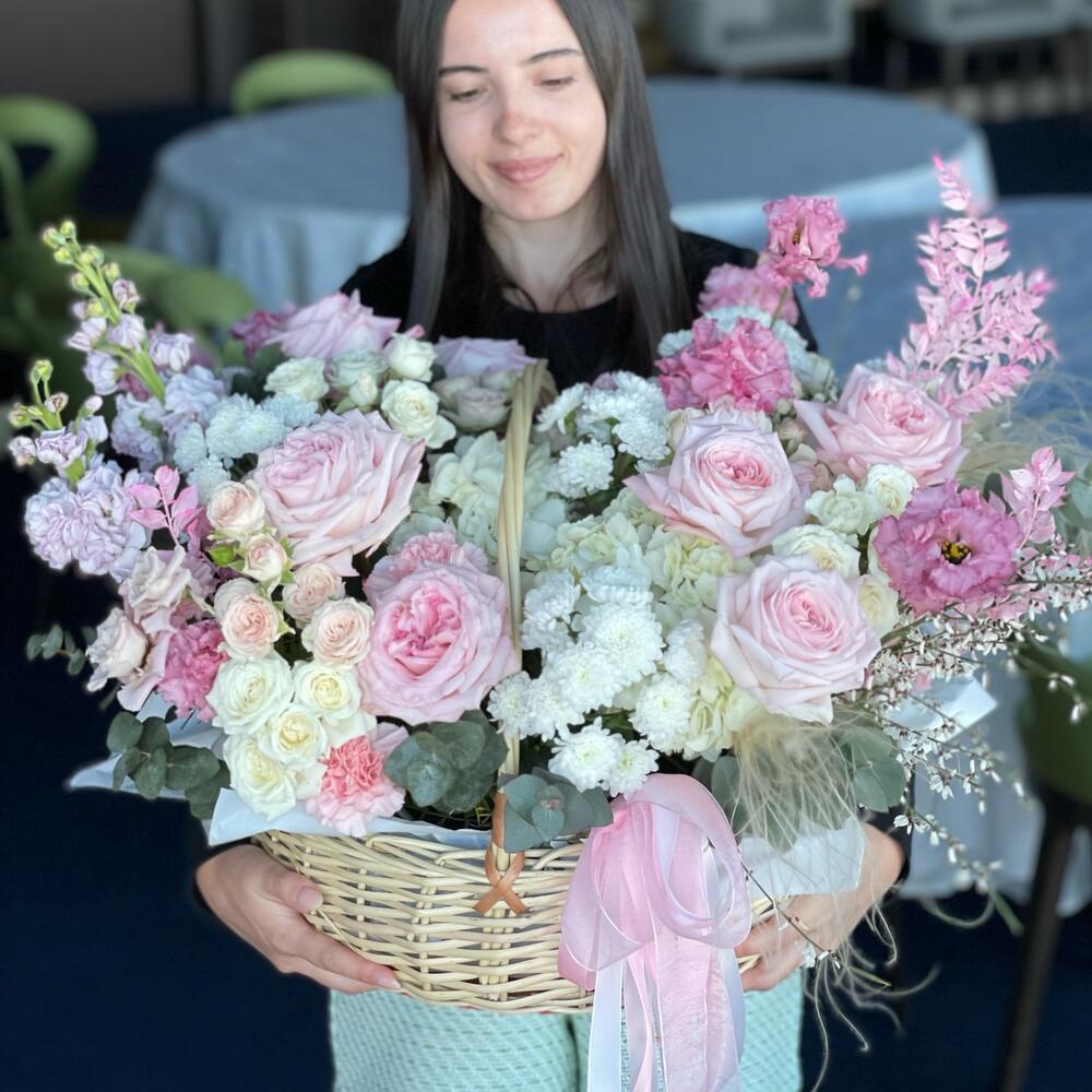 Корзина с цветами розовая
