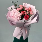Альстромерии, Гортензии, Кустовые розы, Лизиантусы, Розы, Хризантемы