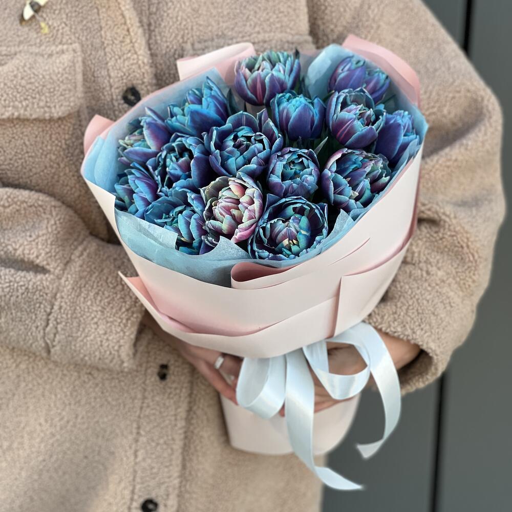 Букет из 15 пионовидных тюльпанов в оформлении!